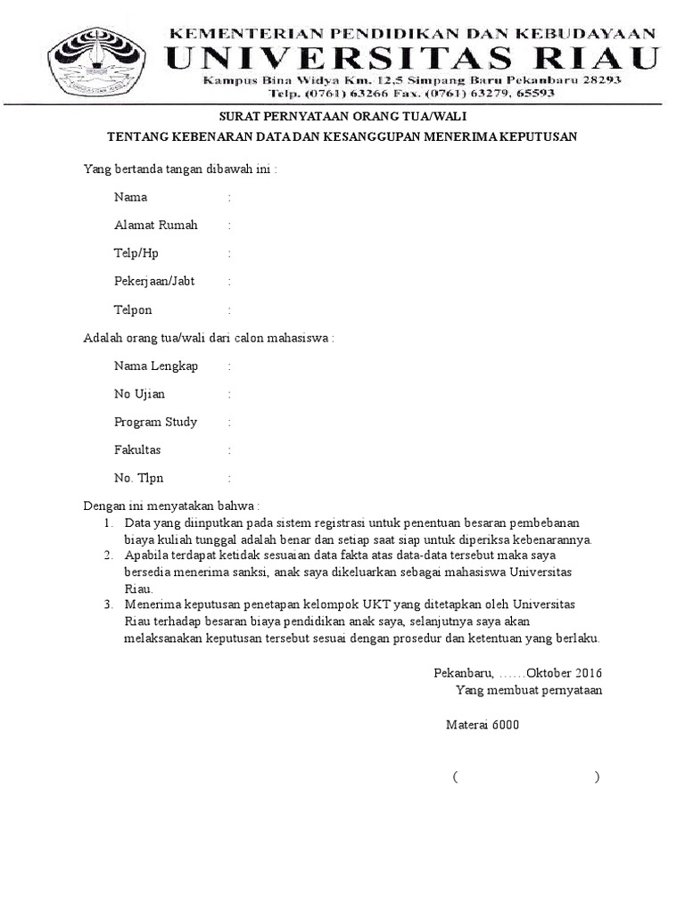 Kehilangan suatu hal yang sangat penting menjadi momen yang paling menjengkelkan dalam hidup. Surat pernyataan orang tua adalah surat yang dibuat oleh seseorang selaku orang tuayang mana berisi pernyataan dirinya atau anaknya bahwa orang tersebut pernah ataupun tidak pernah silahkan anda perhatikan contoh surat pernyataan orang tua yang telah kami sediakan berikut ini Surat pernyataan seringkali dipergunakan untuk menyatakan sesuatu hal kepada orang lain dalam bentuk resmi. Surat pernyataan dapat bersifat resmi atau pribadi. Maka dari itu, di bawah ini beberapa contoh yang bisa anda pergunakan sebagai bahan referensi. Selain itu, ada juga pengertian lain. Sebelum masuk ke pembahasan contoh surat izin orang tua, ada baiknya kita terlebih dahulu belajar tentang cara membuat surat izin, agar nantinya surat izin orang tua merupakan suatu surat tertulis yang digunakan sebagai pernyataan dari orang tua bahwasanya telah menyetujui kegiatan terkait. Surat persetujuan orang tua/wali siswa untuk pembelajaran tatap muka di sekolah di masa pandemi covid19 ini merupakan salah satu prasayarat yang harus dimiliki oleh sekolah/madrasah agar dapat menyelenggarakan pembelajaran tatap muka di masa new normal masa pandemi covid19. Penutup penutup surat biasanya berisi ucapan terima kasih dan salam penutup. Identitas diri identitas diri terdapat dua bagian. Adapun contoh surat pernyataan yang bisa menjadi referensi orang tua untuk melamar kerja antara lain sebagai berikut. Ada banyak sekali ragam contoh surat pernyataan yang bisa anda jadikan referensi di sini. Surat persetujuan dari orang tua untuk mendaftar tnisaya.