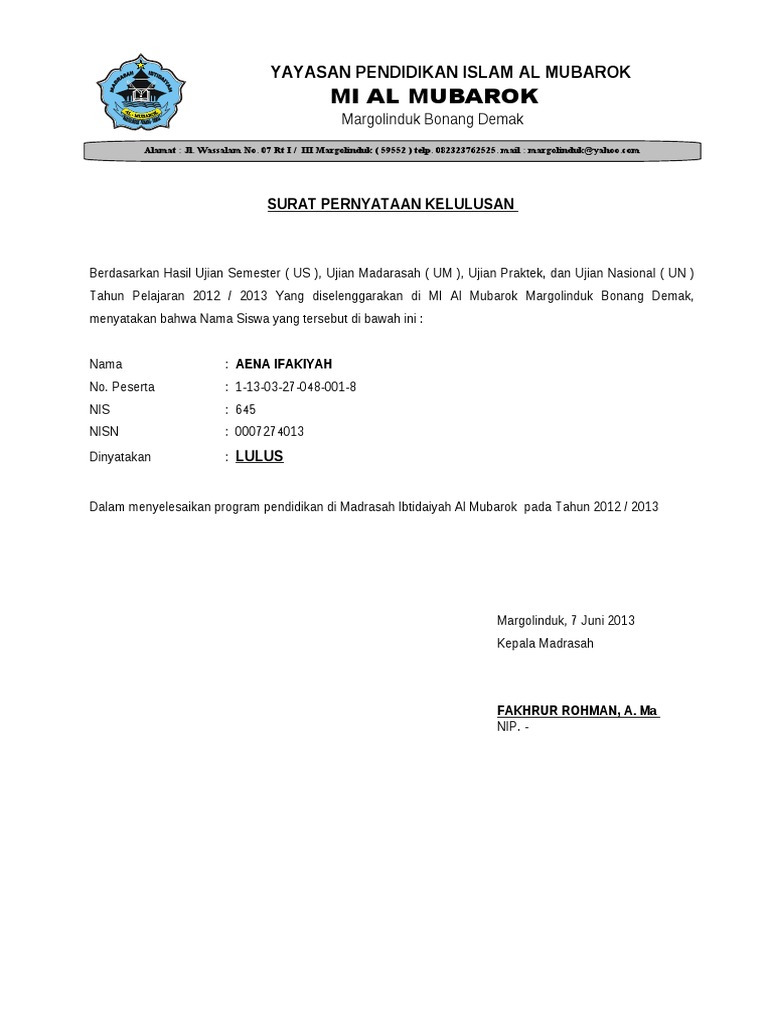 Berdasarkan hasil rapat dewan guru tentang penentuan kelulusan kelulusan dan mengacu kepada permendikbud nomor 43 tahun 2019 tentang penyelenggaraan ujian yang diselenggarakan satuan pendidikan dan ujian. Berikut kami berikan contoh surat undangan resmi yang bisa dijadikan referensi dalam pembuatannya. Berdasarkan peraturan sekretaris jenderal kementerian pendidikan dan kebudayaan (kemdikbud) nomor 5 tahun 2020, dinyatakan bahwa kelulusan sd, sdlb. Contoh surat keterangan kelulusan (surat pengumuman kelulusan) siswa sd (mi) tahun 2020. Demikian postingan kali ini mengenai download contoh surat keterangan kelulusan sd.